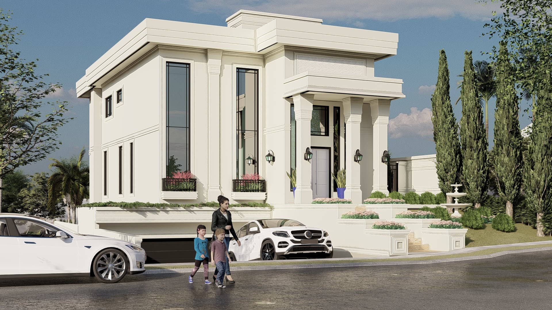 Uma releitura do estilo neoclássico com detalhes importantes do estilo moderno.